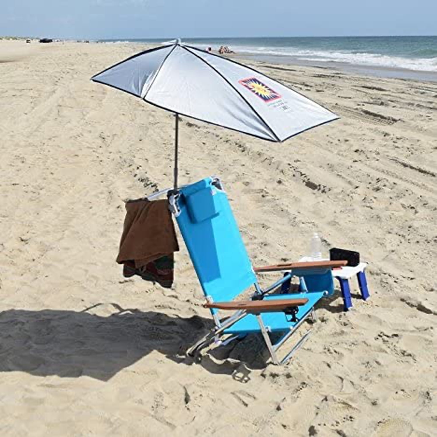 Rio Brand Beach Chair Clamp On Umbrella . Umbrella clamps onto the back frame or arm of a beach chair. The clamp on, 75 denier polyester umbrella offers spf50 protection from the sun to help prevent sunburns from exposure on the beach.